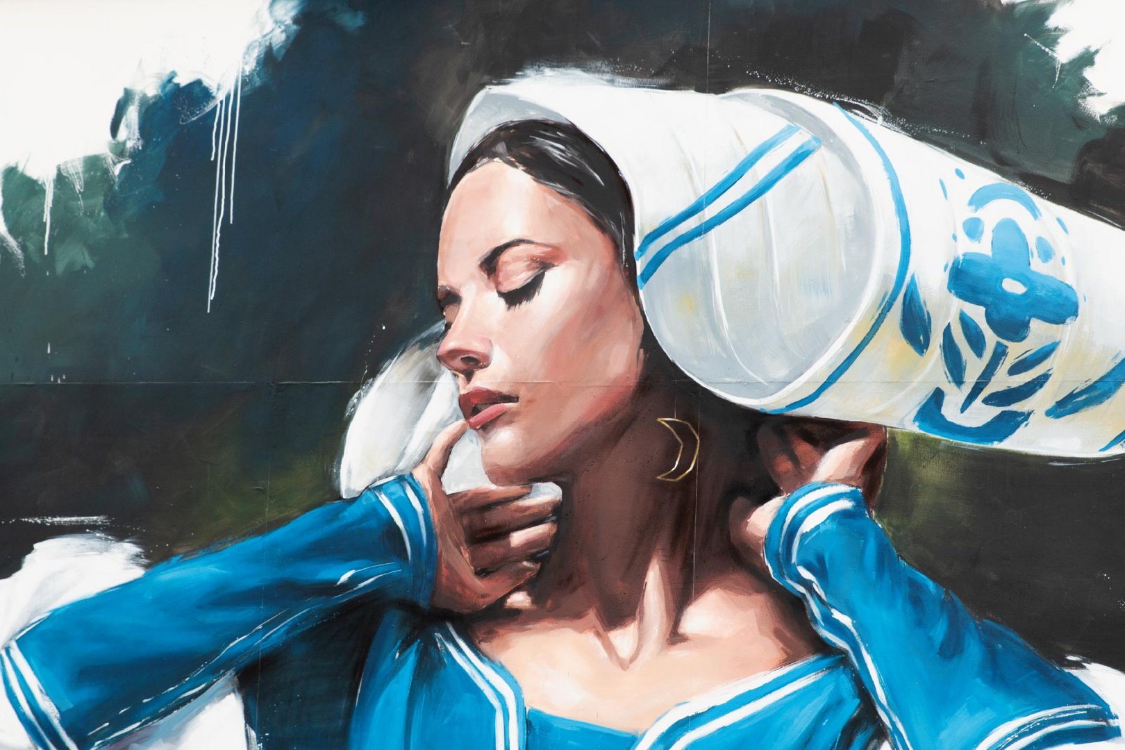 À l'occasion de sa réalisation pour le M.U.R., il a peint l'une de ses "Bretonnes urbaines" ornée d'une coiffe traditionnelle de Saint-Brieuc, surnommée “surdos” ou “aile de pigeon”. Cette œuvre s'inscrit pleinement dans son thème artistique actuel : la fusion entre l'urbain contemporain et l'héritage historique.