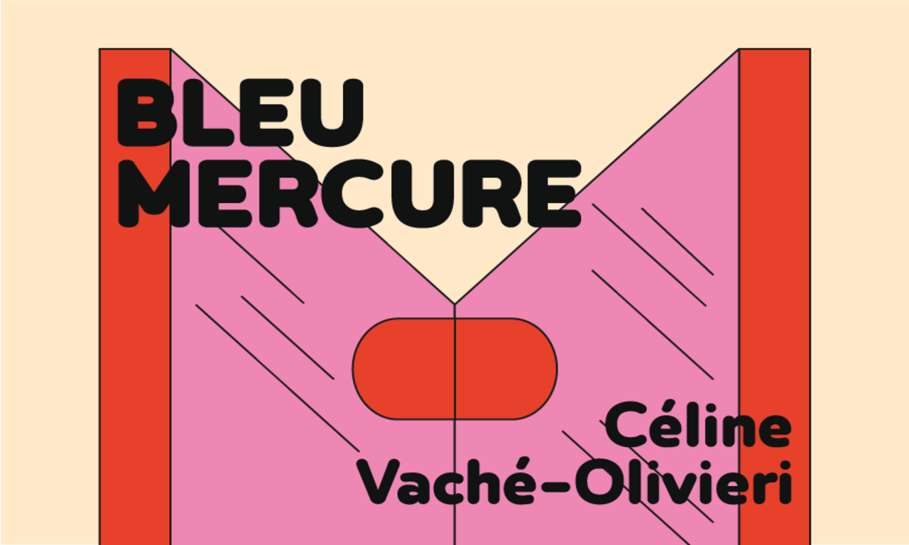 L'exposition Bleu mercure réunit des créations inédites et des ensembles plus anciens. C'est un procédé que Céline Vaché-Olivieri répète. Elle aime réactiver ses œuvres dans des contextes différents. Pour la galerie Raymond Hains, elle conçoit une installation en Plexiglas rose fluo, constituée de 4 angles formés chacun de deux panneaux de 2 mètres de haut, répartis dans l’espace. Ces objets sculpturaux agissent comme dispositif d’exposition pour ses autres pièces. L’artiste les a imaginés comme des cabines d’essayage, mais résumés à leur plus simple architecture et transparents. Cette question de ce qui est donné ou non à voir traverse toute la recherche de l’artiste. A la galerie, elle a installé au fond de l’espace une série de grands miroirs qui réplique l’exposition et nous intègre dans son reflet. Dès lors le double se remplit d’une présence nouvelle et agrandit l’espace de nos imaginaires. Où le bleu mercure serait le rêve d’un rose fluo.